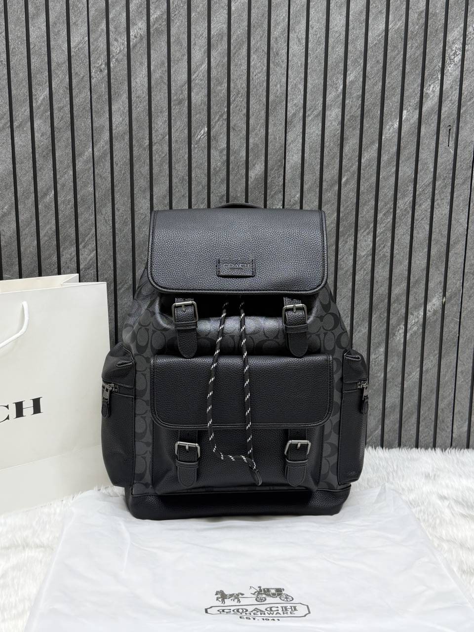 Coach_909_CB_Black-Black_Warner_Signature_Large_Backpack_With_DustCover_CarryBag