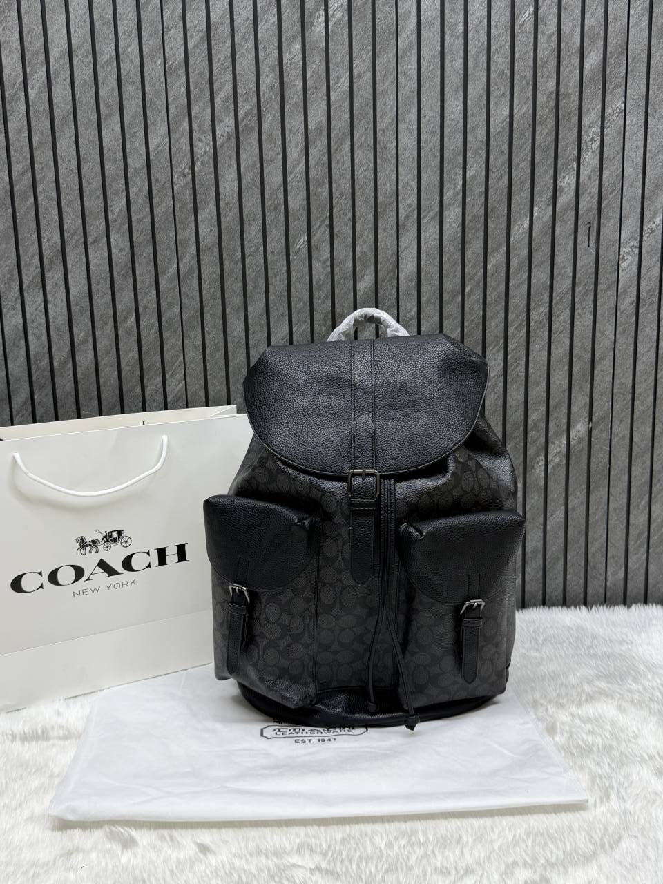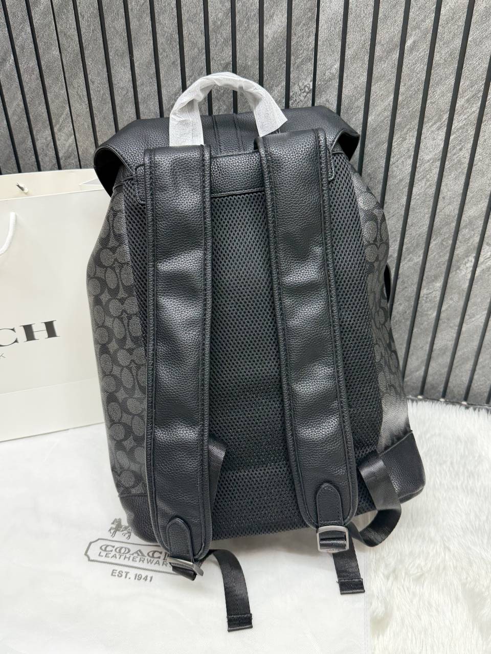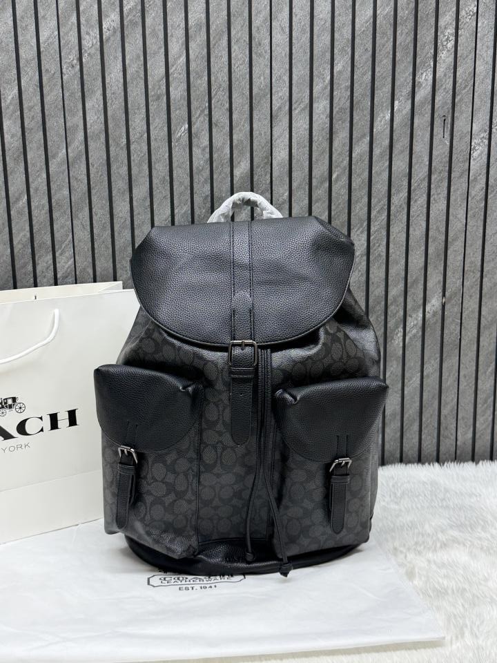 • Coach_909_CB_Coffee-Black_Warner_Signature_Large_Backpack_With_DustCover_CarryBag