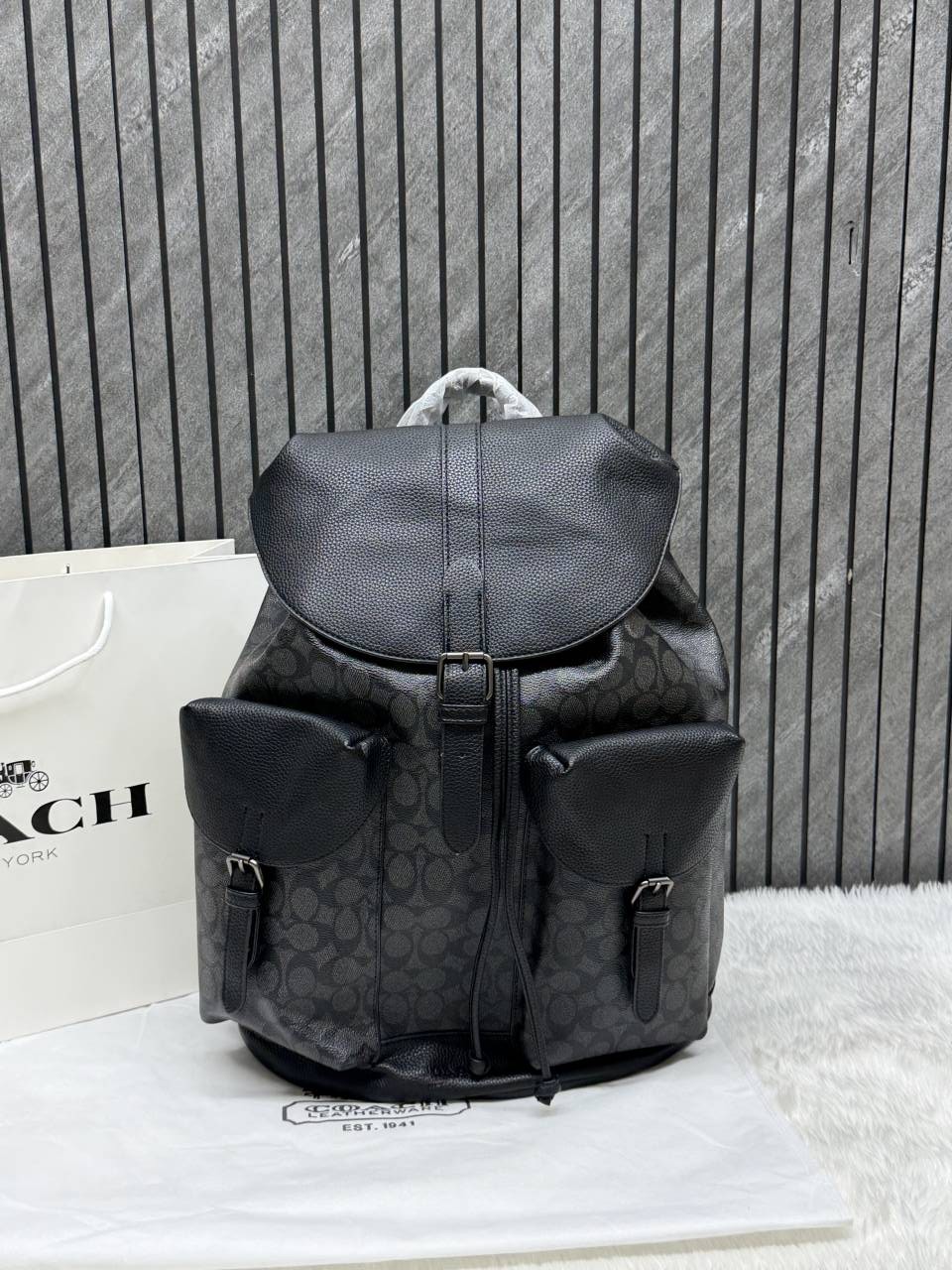 • Coach_909_CB_Black-Black_Warner_Signature_Large_Backpack_With_DustCover_CarryBag