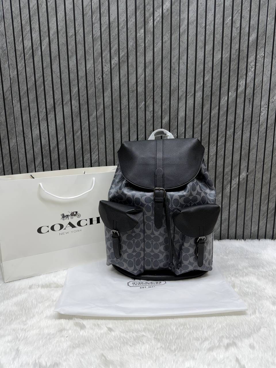 • Coach_909_CB_Coffee-Black_Warner_Signature_Large_Backpack_With_DustCover_CarryBag