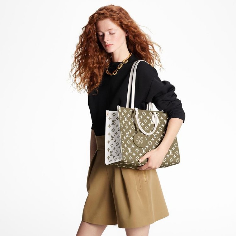 LV ON THE GO MONOGRAM MM GREEN WHITE MEDIUM BAG