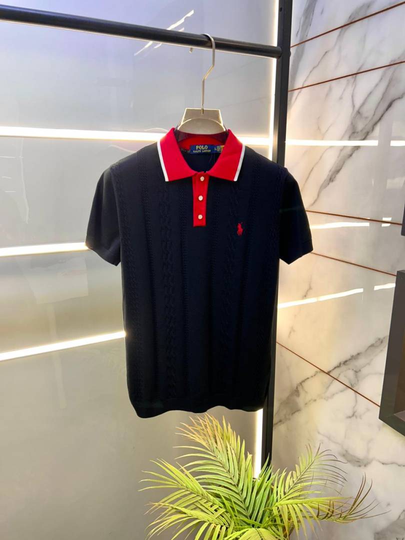 Ralp h Lauren Polo Imported knitted Black Super Premium Collar Neck T-shirt F3510-BL