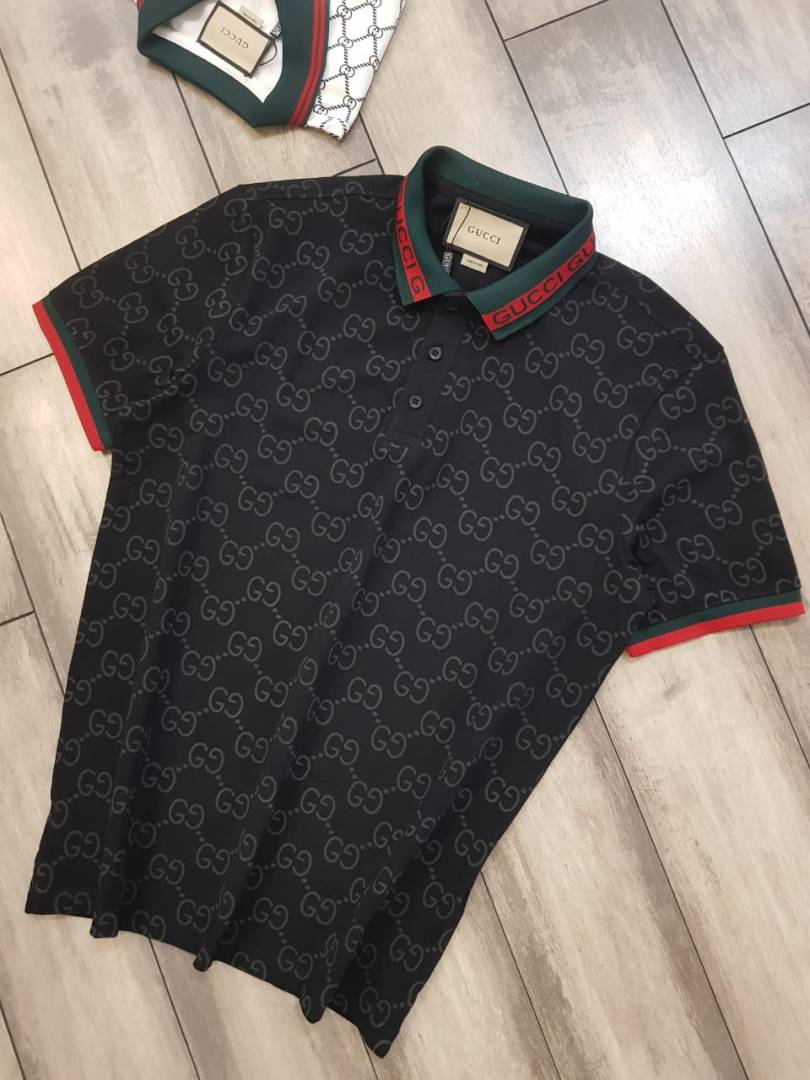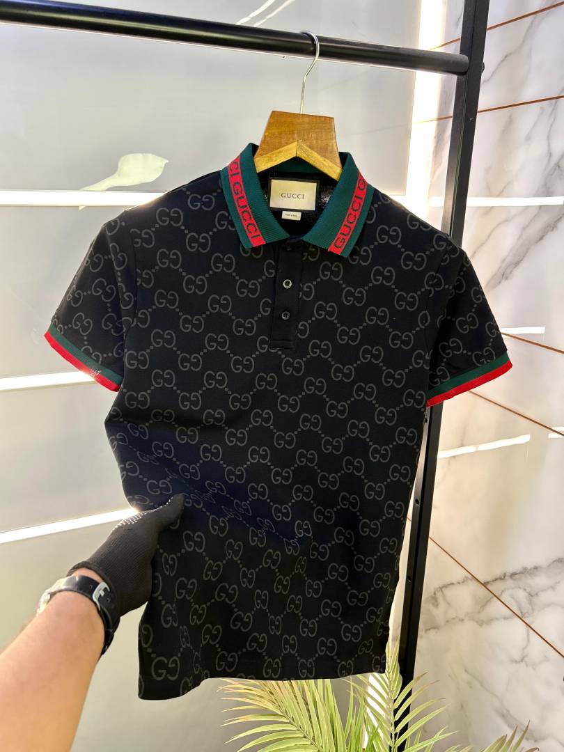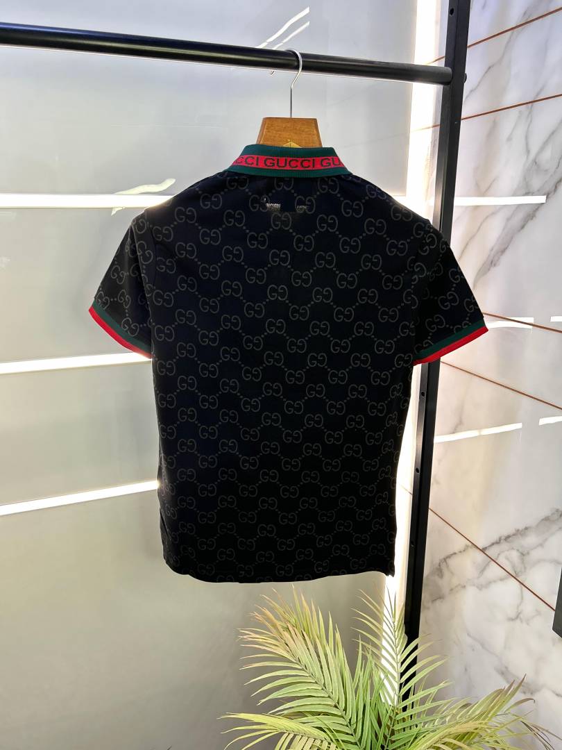 Sale Gucc i Imported Black Monogram Polo Neck Premium Collar T-shirt F2485-BL