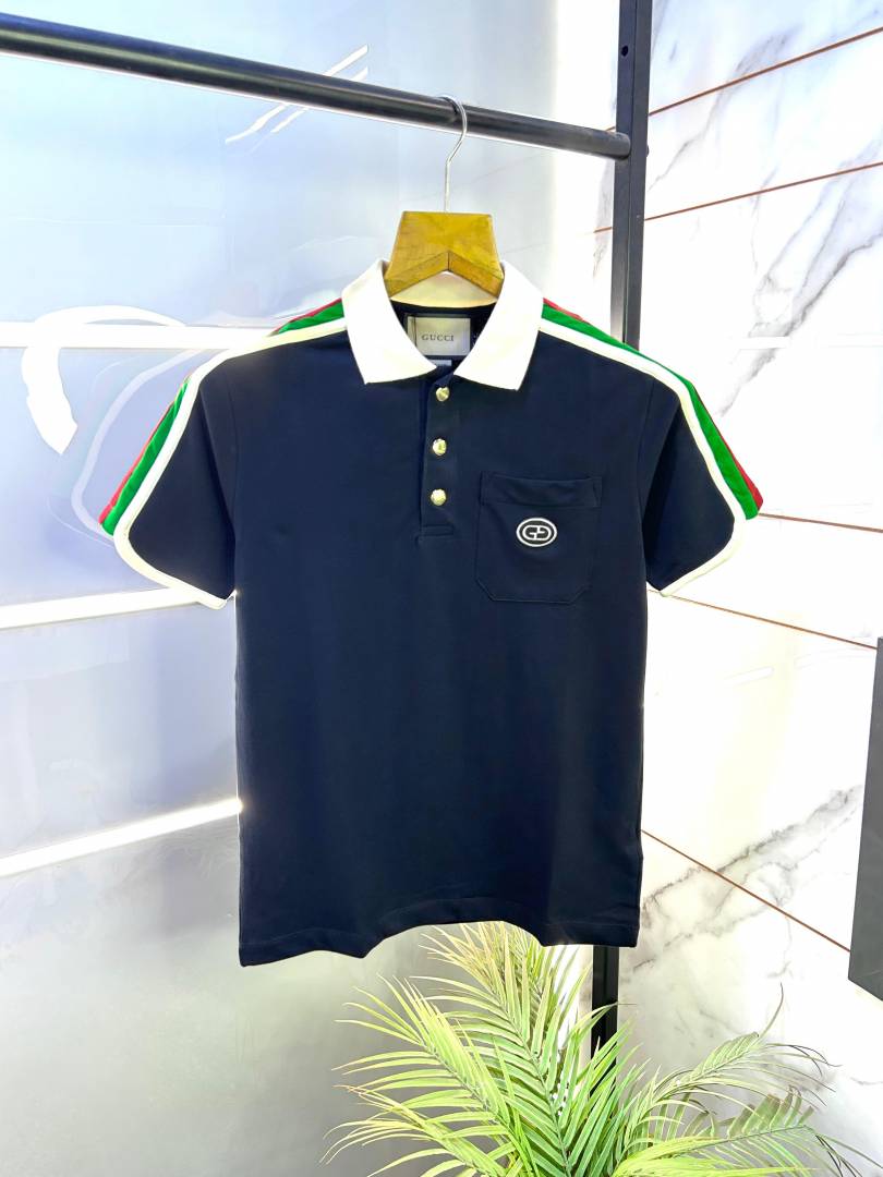 Sale Gucc i Navy Imported Polo Neck Premium Collar T-shirt F2660-N2