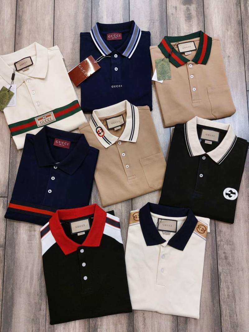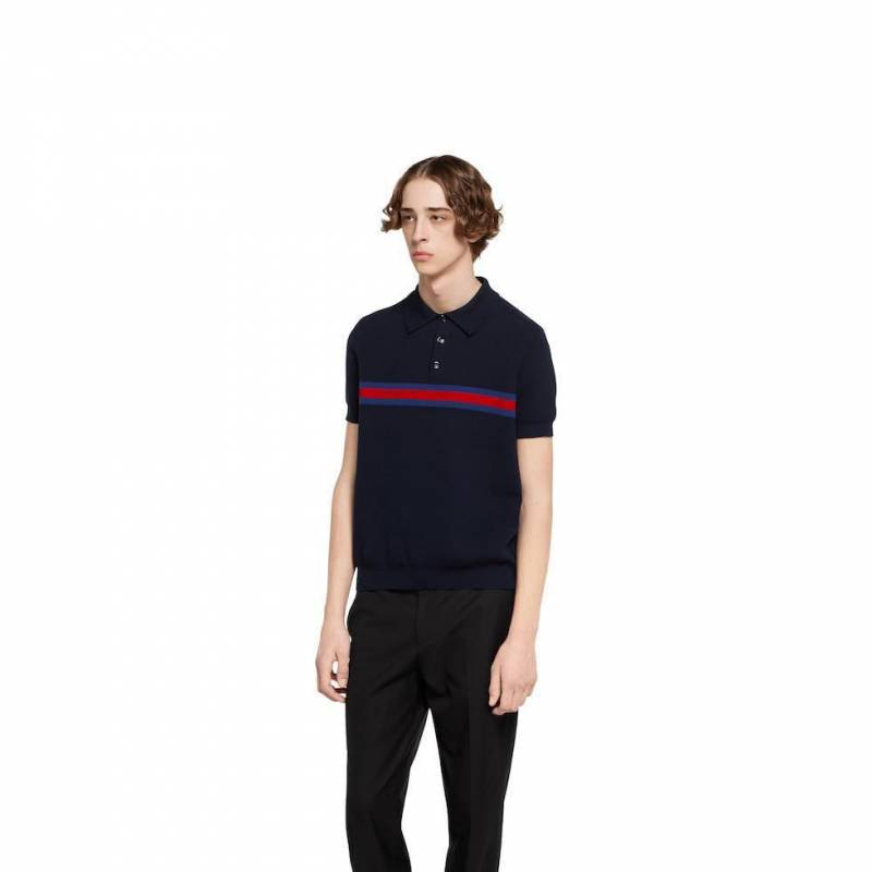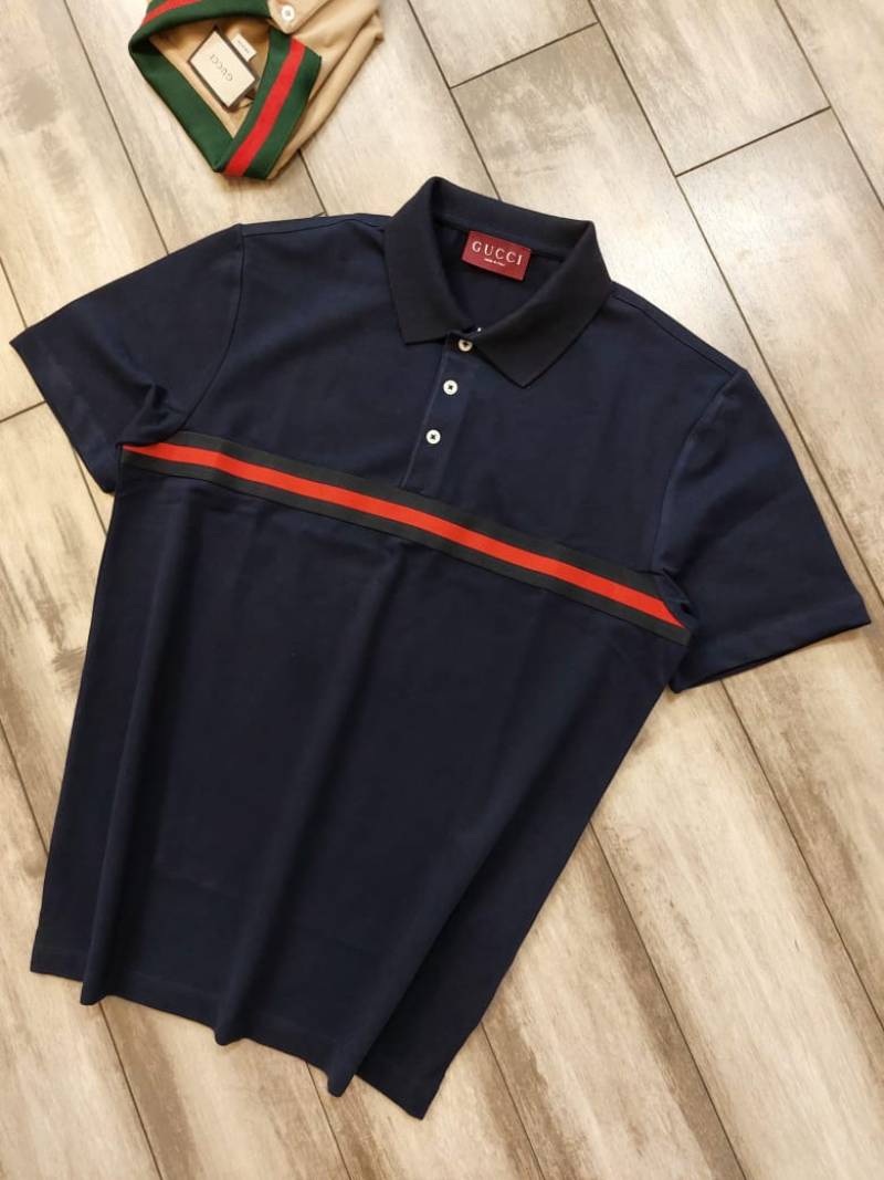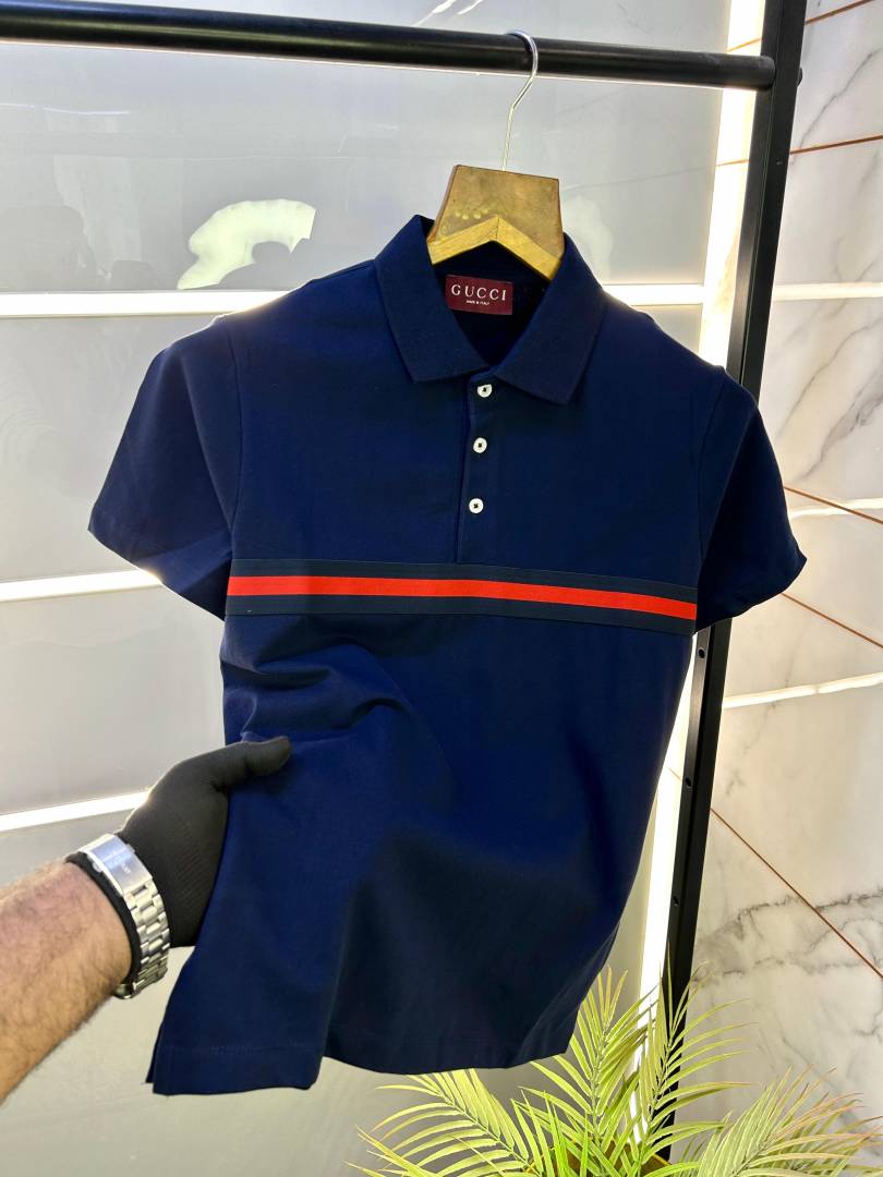 Sale Gucc i Navy Imported Polo Neck Premium Collar T-shirt F2777-N2