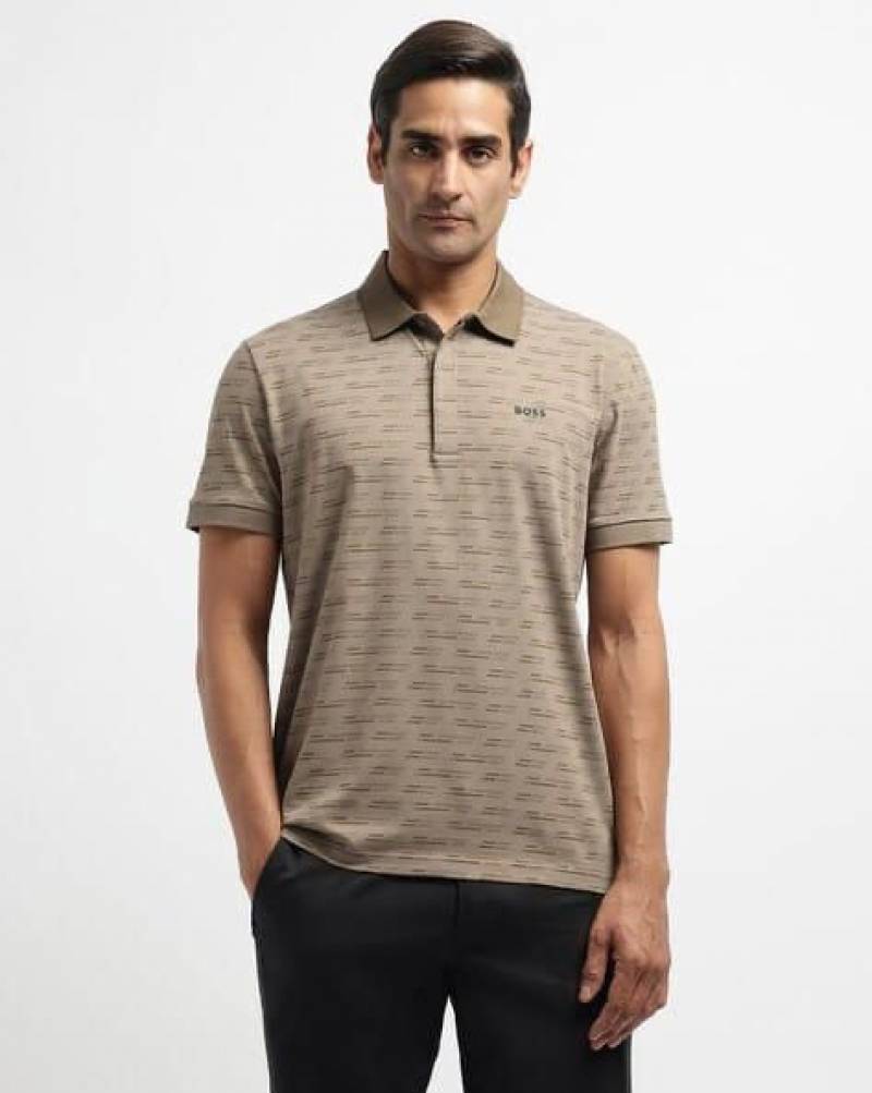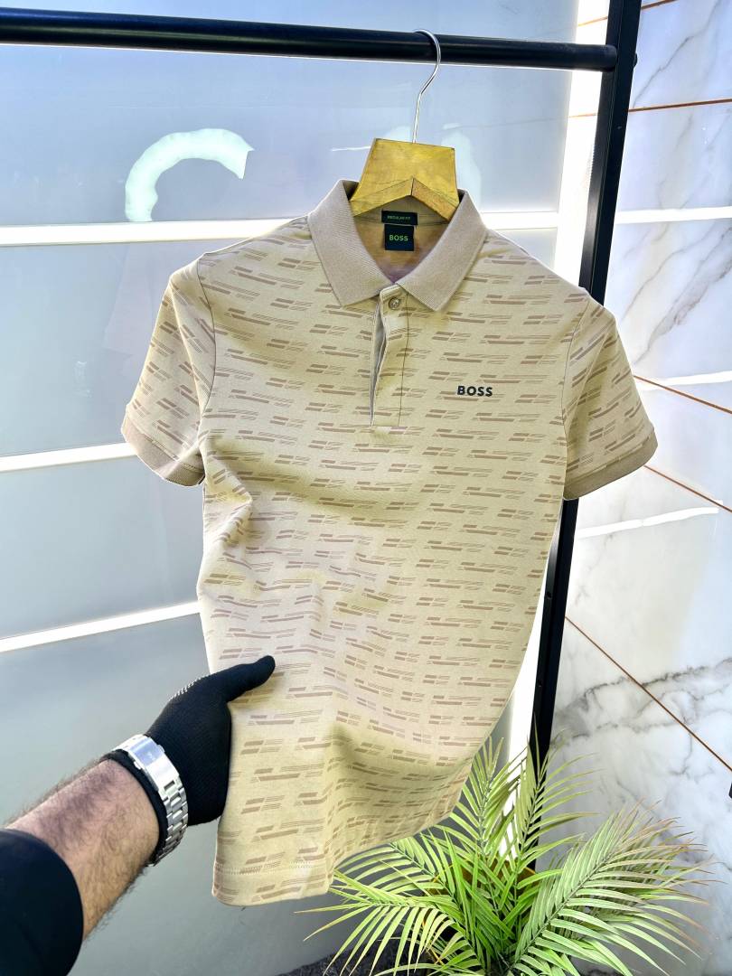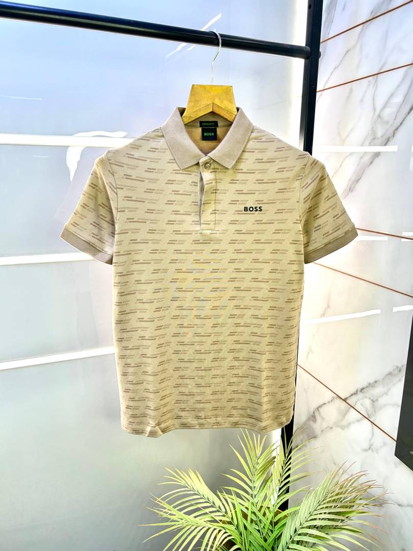 Sale Hugo_Boss Beige Premium Collar Neck Polo T-shirt F2888-BE